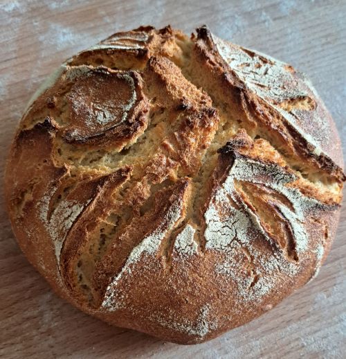 Farine de Khorasan semi-complète, levain de blé, sel (soit 9€/kg)