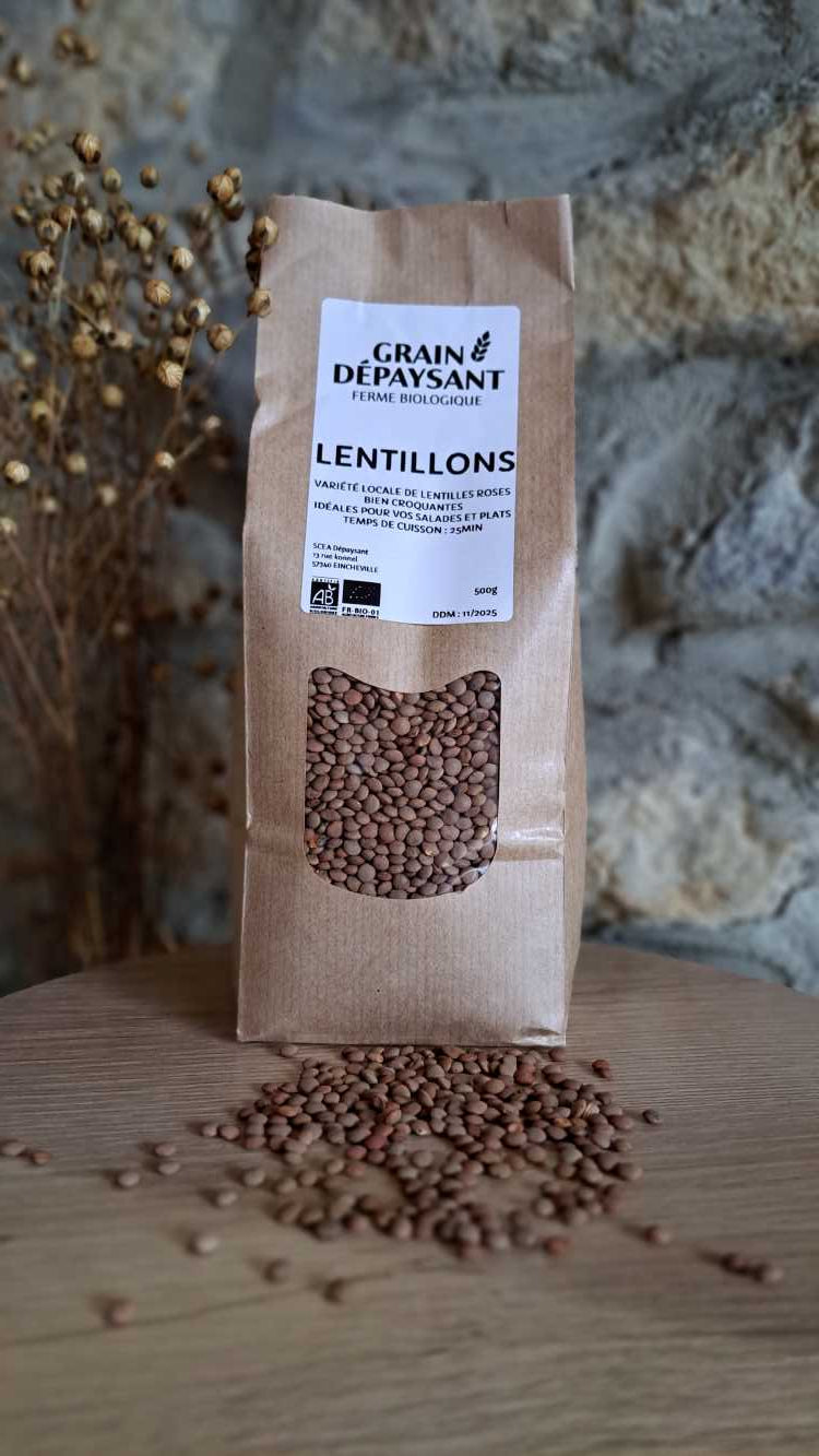 Lentilles vertes cultivées sur notre ferme en agriculture biologique, à Eincheville en Moselle, dans une démarche 100% bio, locale et autonome. Toutes les étapes du champs jusqu'à votre assiette sont réalisées par nos soins à ferme.